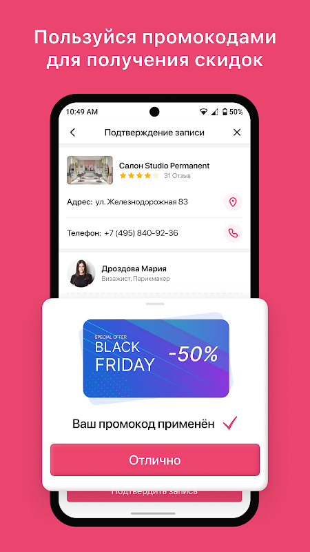 找到合适的服务,选择值得信赖的专家,注册一家评价很高的沙龙,接收有关您即将进行的预约的提醒,然后进行手术。
