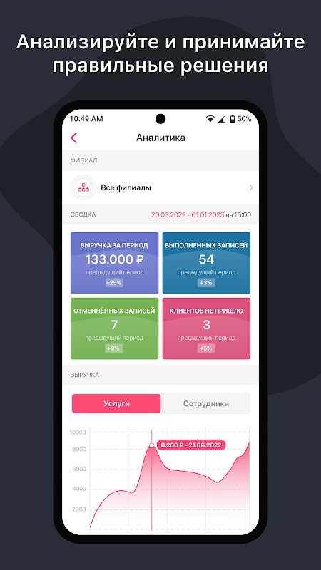 关于场所占用情况、热门服务和专业人士的准确统计数据,使您能够增加出席率并留住访客。