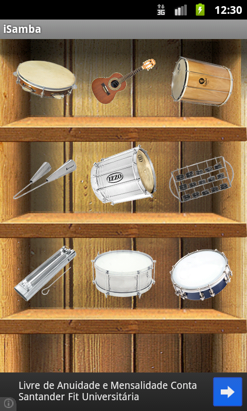 Com iSamba, você saberá o som de cada um dos principais instrumentos da bateria de uma escola de samba! Ouça e toque o Pandeiro, o Surdo, a Caixa de Guerra, o Tamborim, o Reco reco, o Cavaco ou Cavaquinho, o Agogô, a Cuíca e o Chocalho!