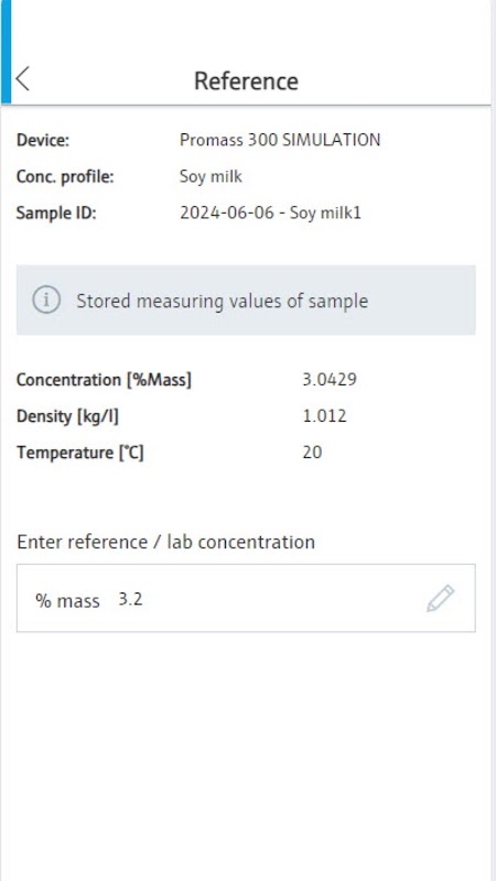 该应用程序在采样过程中通过 WiFi 连接自动注册 Promass 的相关数据。提供有关过程稳定性和设备诊断的信息来评估样品质量。根据实验室分析结果,样品和调整调整 Promass 浓度函数并相应更新。