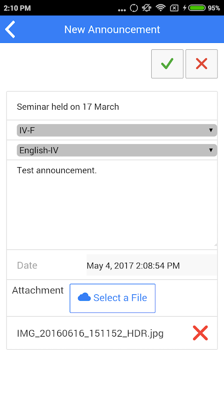 - Required app version update alert enabled - Now a teacher can upload multiple attachments with the announcement - Minor bug fixes and performance improvement