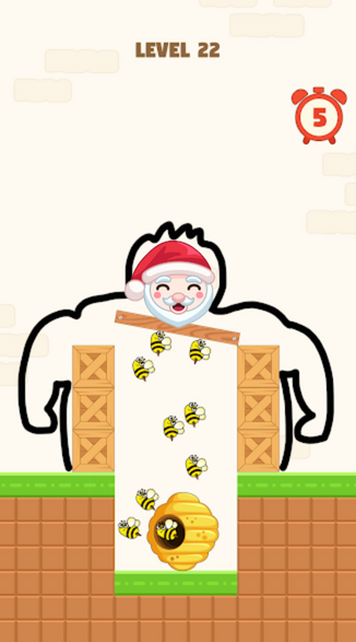 Draw to Save Santa claus is a casual puzzle brain game. You use your fingers to draw straight lines to create walls to protect Santa claus from the attack of the bees in the hive. You need to protect them with a painted wall for 10 seconds during the bee attack.