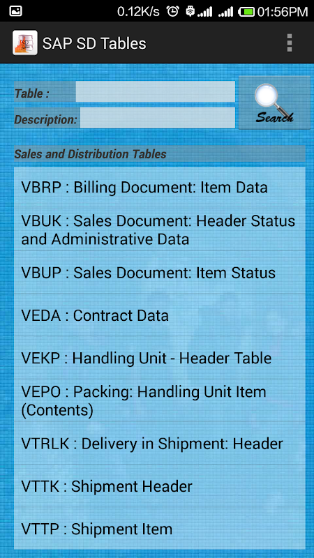 Search for SAP SD (Sales and Distribution) tables and fields offline with this app. You no longer need an SAP system to design Functional Specification in SD Module. Research through the tables and fields even when you are offline and design complex SAP SD applications.