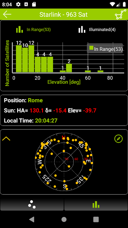 - 卫星预测通过与升压至24,48,72小时地图视图和指南针查看详情。