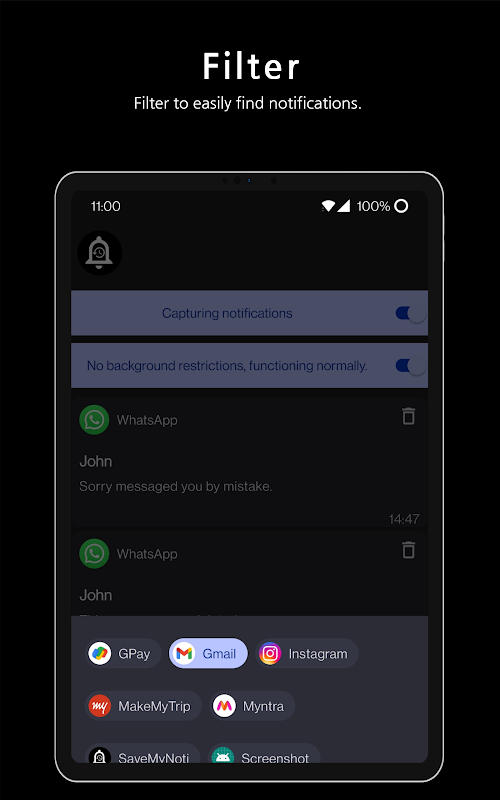APKPure 使用签名验证功能,确保为您提供无病毒的 Save Notification History Log APK 下载。