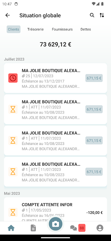 借助 SBA Compta 应用程序,您可以随时随地查阅您的会计、法律文件、客户和供应商未付款项以及银行余额。