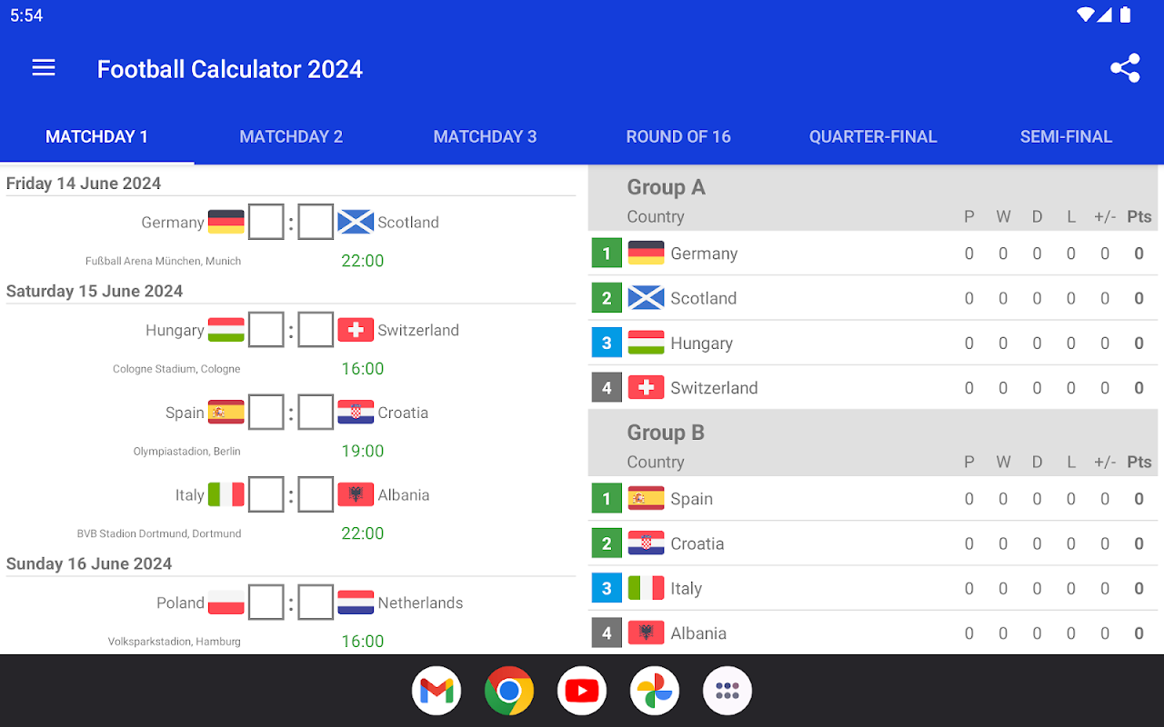 您只需要填写自己的比赛结果,应用程序本身就会构建该组的所有表格并计算哪些球队将进入季后赛。
