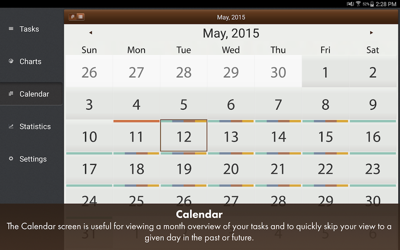 任务,日子可以提前计划和通过实际的图形日历或列表视图中查看一天按一天。看到每一天,在你的日历与计划任务类别的颜色标记。