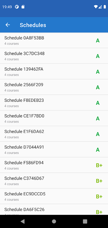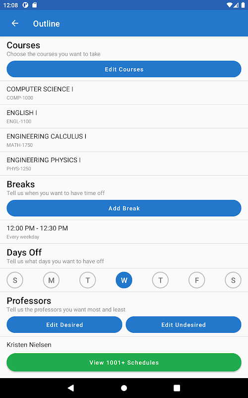 免去在 ScheduleLab for Colleges 注册的麻烦!我们闪电般的算法能够处理您的需求并计算出您可用的最佳选择。需要休息一天吗?想拥有你最喜欢的教授吗?没问题!只需在应用程序中输入您的偏好,我们就会尝试匹配它们!
