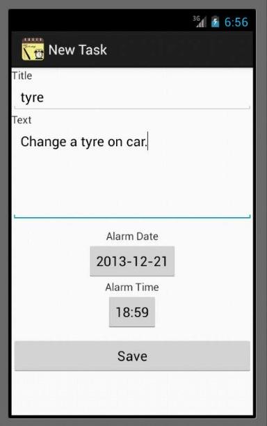 Scheduler是一个简单的应用程序,可让用户创建任务列表。每个任务都有一个警报日期和时间,通知用户该任务。通过状态栏和警报声进行通知。易于输入,编辑和删除任务。按下菜单按钮,添加新任务或调整设置。添加和编辑的布局很简单,仅包含几个字段:标题,文本,警报日期,警报时间。