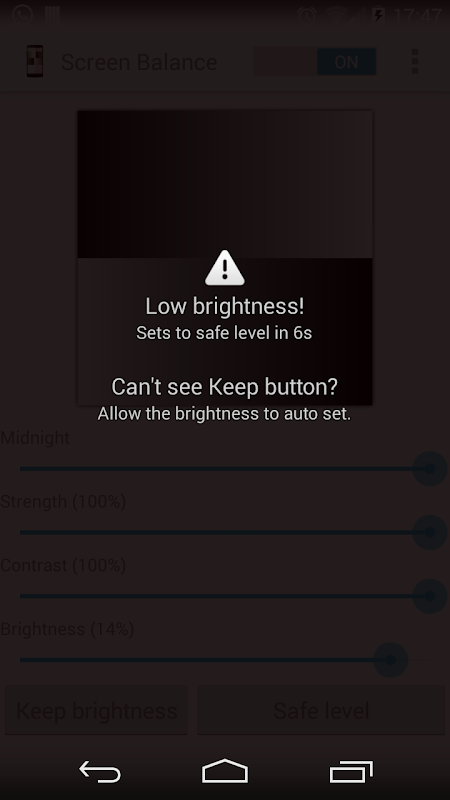 ✓ 将亮度级别降低到 Android 通常允许的水平以下 - 防止夜间紧张,尤其是在 AMOLED 屏幕上。