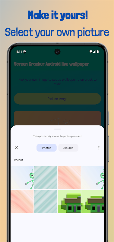 使用 Screen Cracker 动态壁纸,将您的手机变成无尽乐趣和放松的源泉!您可以将您最喜欢的照片设置为动态壁纸,并通过触摸屏幕裂纹效果观看它们变得栩栩如生。