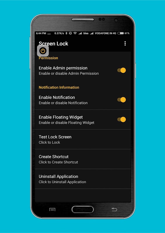 1) Before uninstalling, Click on run Screen lock Setting application and click on "Screen Lock" button.