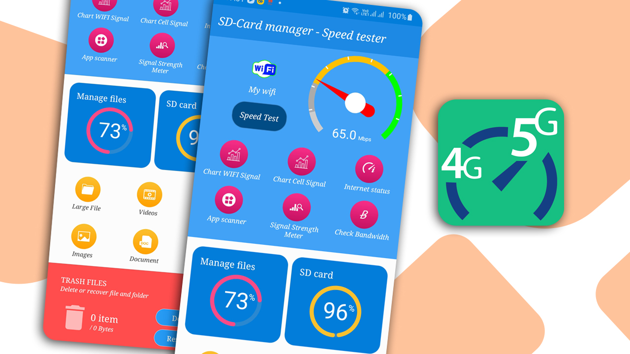 “SD-Card manager & Speed tester”提供简单的功能来测量互联网速度和 Wi-Fi、5G、4G LTE、3G 的网络速度测试以及手机上的互联网速度,还可以测试网络性能功能!