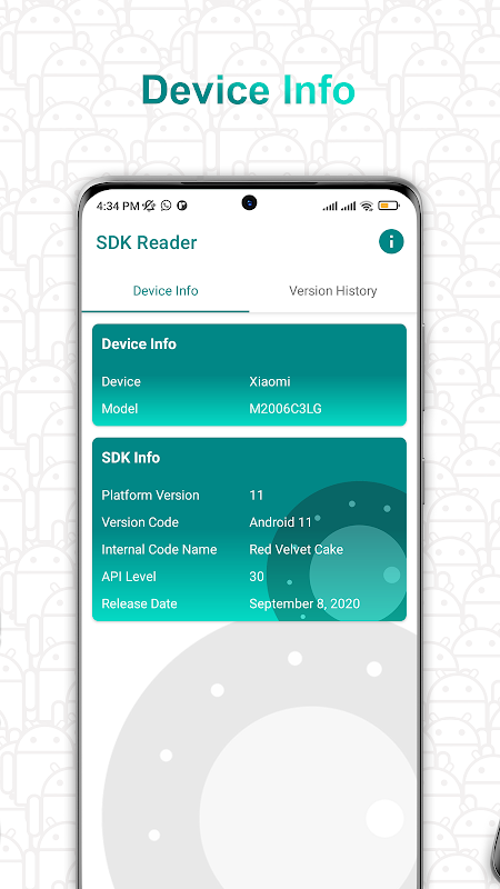 通过 SDK Reader 应用程序,您可以轻松访问有关设备平台版本、内部代码名称、API 级别、发布日期、设备制造商和设备型号的基本信息。及时了解最新进展并为您的开发项目做出明智的决策。