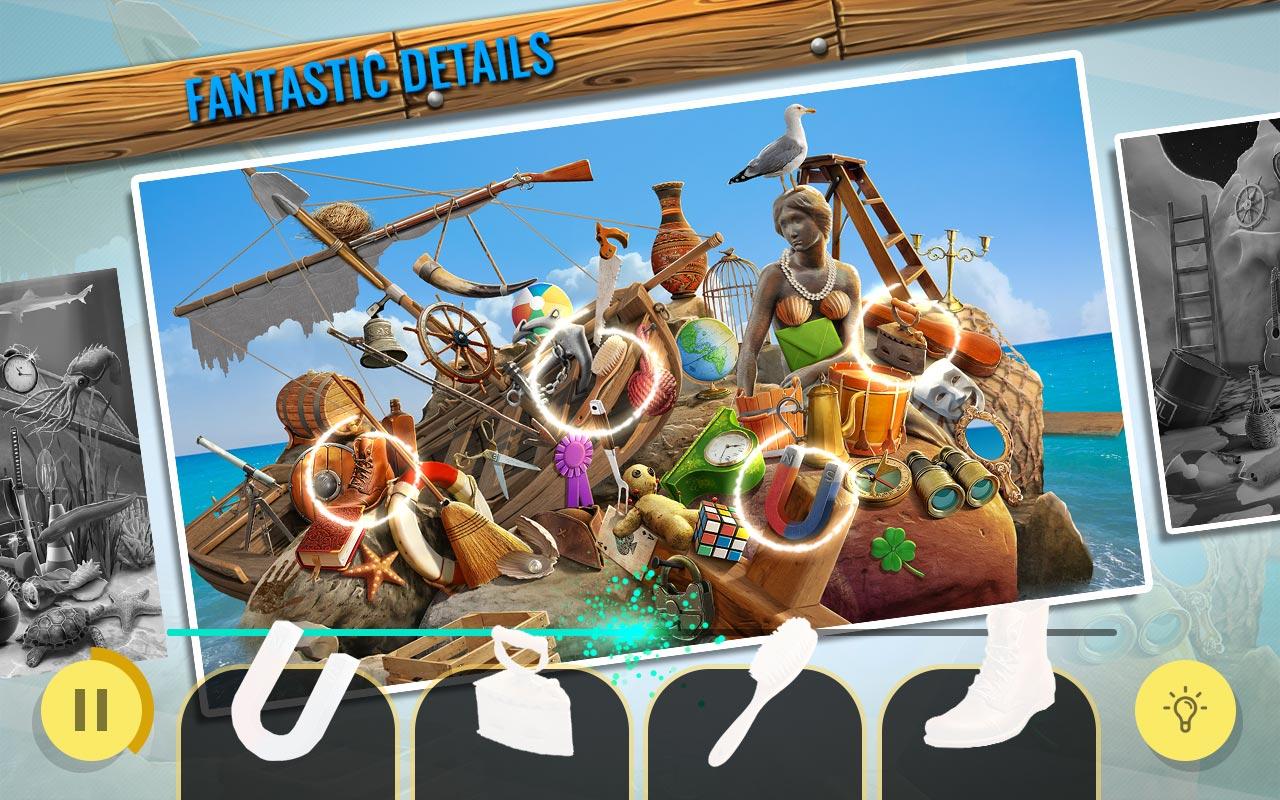 如果你是海盗游戏的粉丝,并且你喜欢在遇难的失落岛屿上寻找丢失的宝藏,那么你会喜欢这个寻找物体的游戏。这是成年人最好的沉船游戏之一,也是最受欢迎的寻找和寻找所有世代的隐藏物品游戏。成为一名成功的沉船探测器!使用您的搜索技能,为您生命中最伟大的探险做准备。这艘臭名昭着的海盗船在搜寻隐藏的宝藏时已经沉没在加勒比海这个神秘岛屿的海岸附近。下载“寻找沉船 – 找到隐藏的人工制品”并通过沉船进行深入研究!