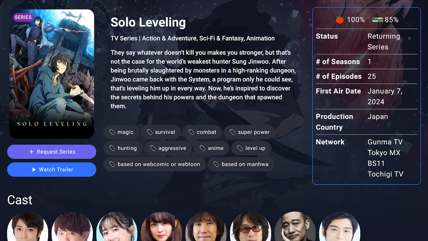 SeerrTV 将您的电视转变为媒体发现和请求的中心,与您现有的 Jellyseerr 或 Overseerr 服务无缝集成!