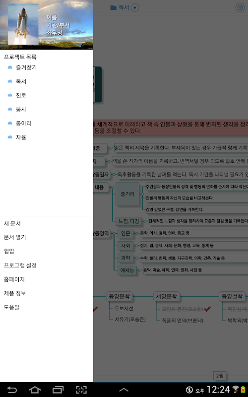 진로, 봉사, 독서, 동아리활동을 각각 하나의 프로젝트맵으로 작성/관리
