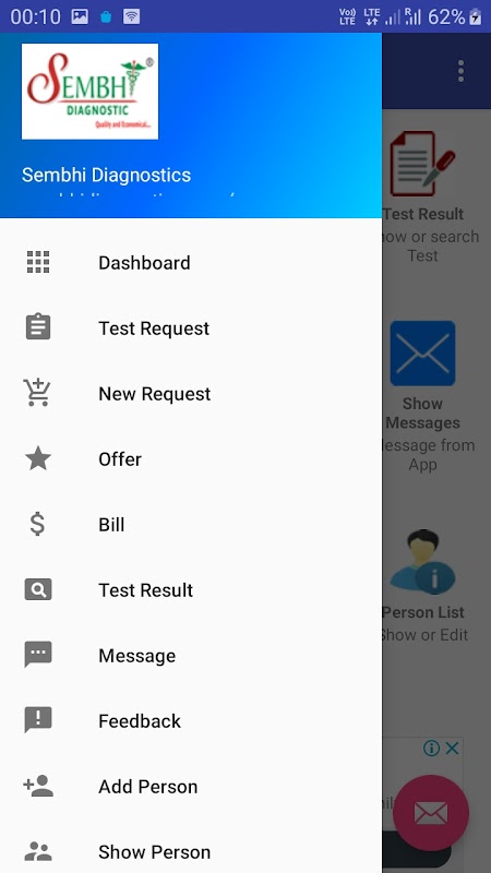 Patient can request test, access bill, offer, test result, analyse result and much more. The same can also be used by by collection boy to enable patient entry and receipt from the client site in real time.