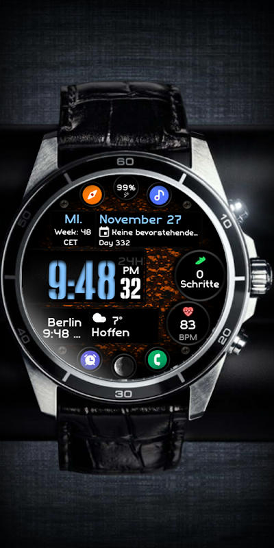 该表盘支持 API 级别 30+ 的所有 Wear OS 设备,例如 Pixel Watch、Samsung Galaxy Watch 4、5、6、7 等。