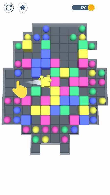 这个谜题是关于使用逻辑以正确的顺序点击彩球以清除所有块。如果您没有按正确的顺序移动球,您将留下未清除的方块。