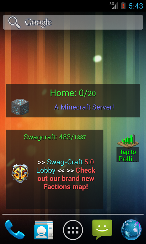 Widgets and notifications are supported as well, making it even easier to check your favorite Minecraft server! Notifications can be set to trigger when a server is down or has a certain number of players, and widgets can show the number of players online for any number of servers you choose.