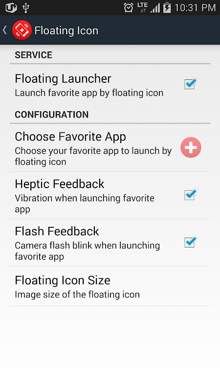 ● Place floating icon anywhere you like and Select a suitable size to touch.