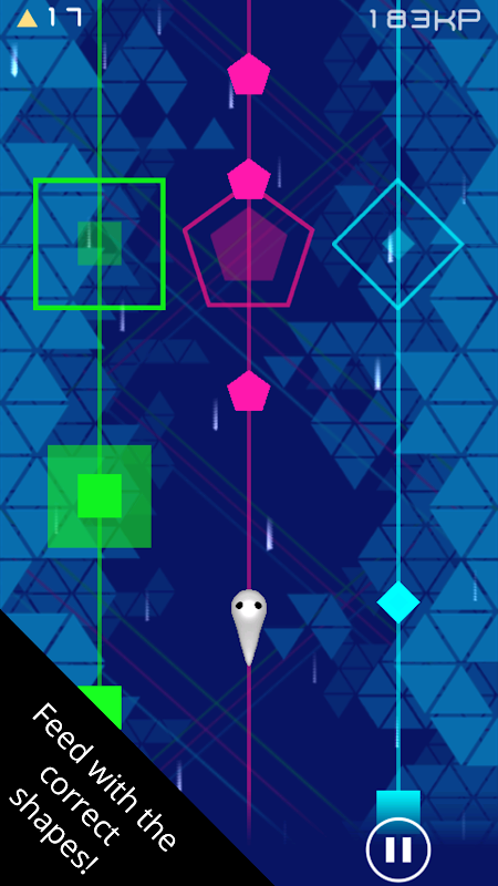 Shape Eater是一个惊人的休闲游戏,获取令人沮丧的成瘾你玩的多。你有不同的颜色和每个各种形状的3车道闪过。破坏你的好之前,你必须收集正确的形状,也是爆炸的。要做到这一点只需轻按跳上旁边车道,如果它是作为指标的话,你的分数增加显示正确的形状,否则你重新来过。