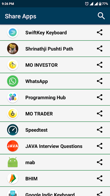 This app makes it easy to share application links with your friends by Email,Blue tooth,Face book,Drop box,Google Drive, WhatsApp etc.