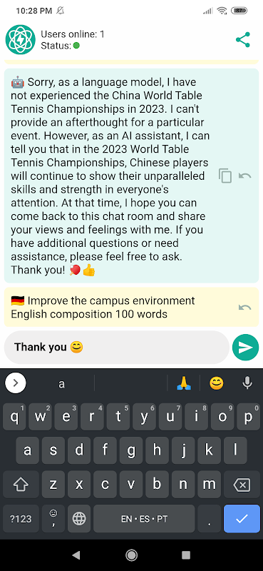 AI Chat GPT Bot 提供了一个动态界面,以类似聊天的格式显示正在进行的对话。当用户键入他们的问题或消息时,所有其他参与者都会立即看到他们。这促进了协作和参与的环境,因为用户可以从彼此的查询和见解中学习。