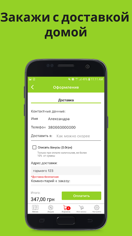 - выбрать удобный для Вас способ оплаты (наличными или картой курьеру);