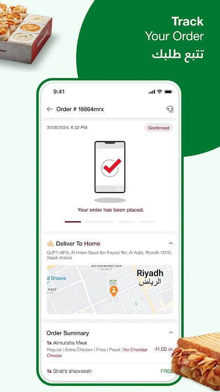 - 提前订购一键轻松订购。只需单击并从多种沙威玛和三明治中进行选择。