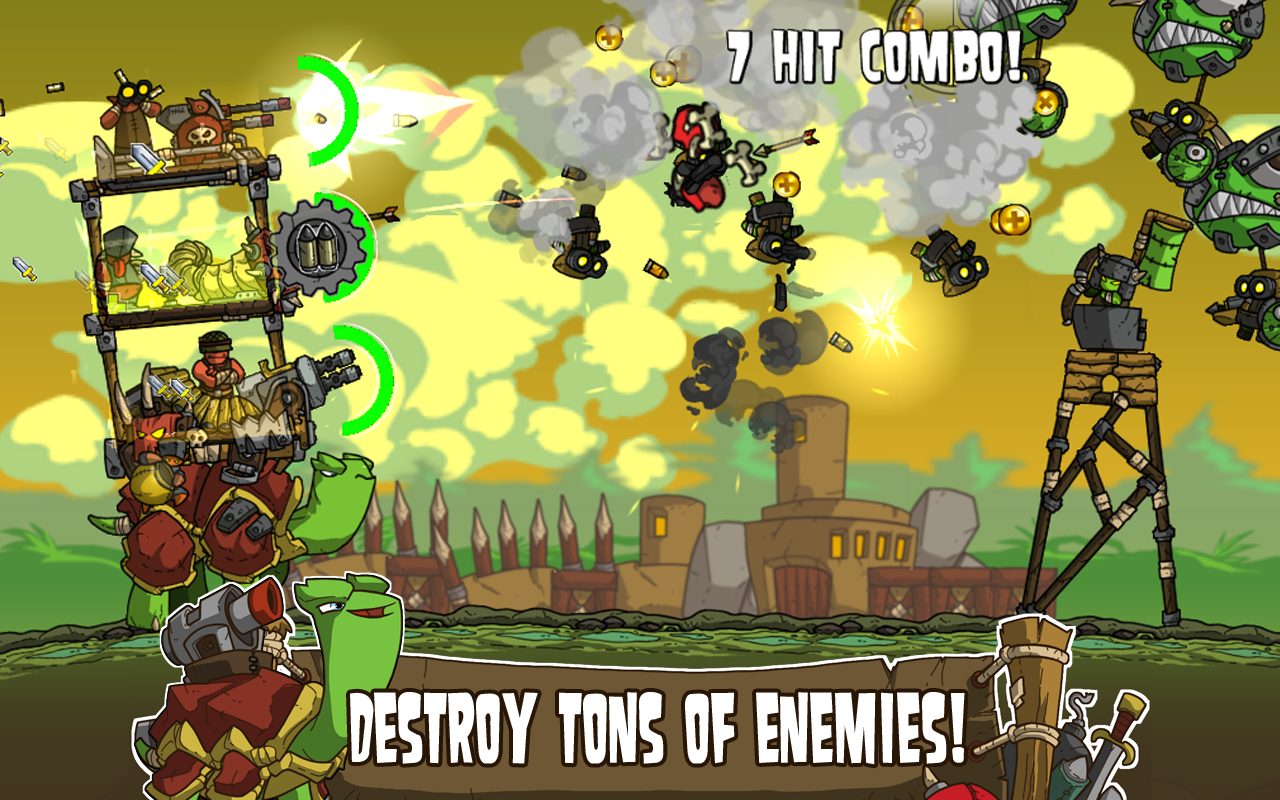 跳上巨型战争乌龟,背上枪,开始朝敌人射击!
