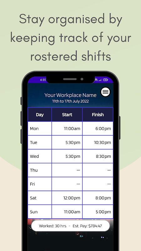 保持井井有条并轻松跟踪您的轮班和工作时间