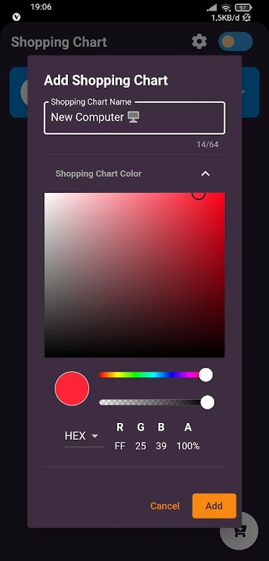 - Set the Color of the Shopping List as You Like