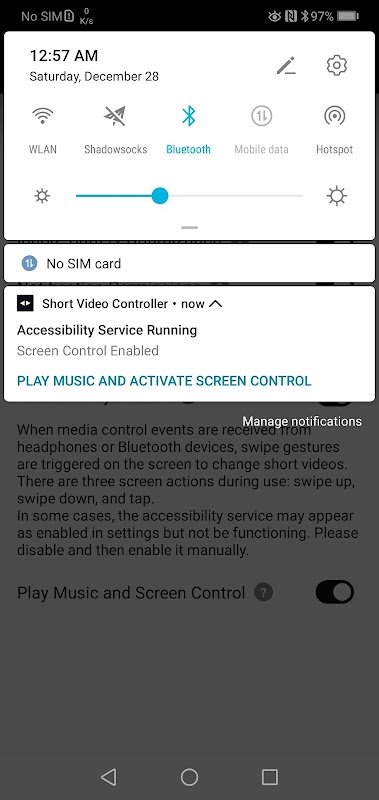 应用需要使用无障碍服务API来滑动屏幕切换上一个、下一个、播放和暂停短视频;