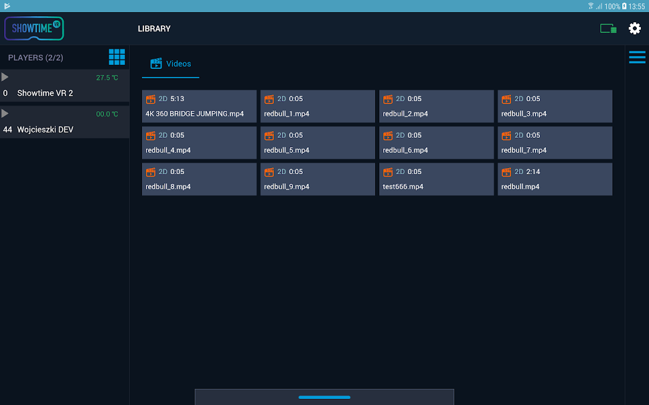 Showtime VR支持对许多VR耳机进行远程管理。该解决方案包括一个360播放器,该播放器安装在智能手机或VR头戴式耳机上,并能够播放高达8192x4096px的360度视频(2D和3D)以及360图形和照片(全景图)作为幻灯片。
