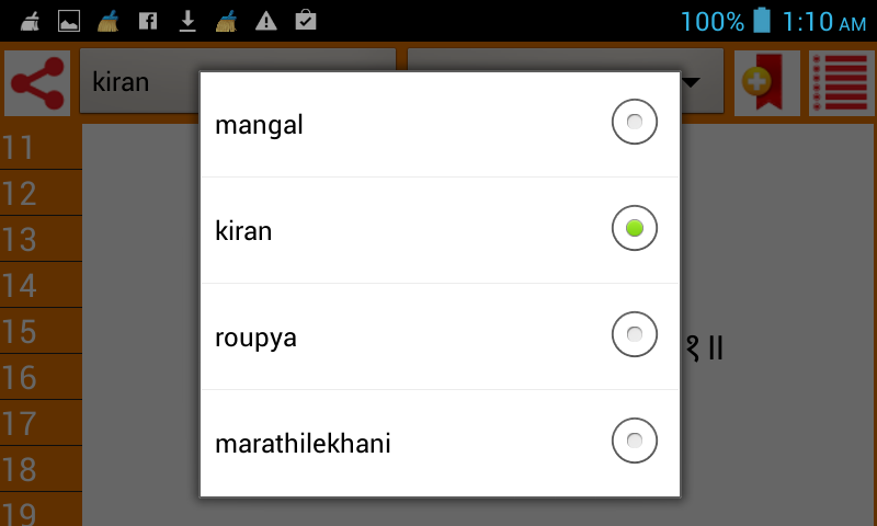 用户可将其加入书签任何数量shloks和书签shloks可以使用书签列表按钮,在右上角可以很容易地访问。