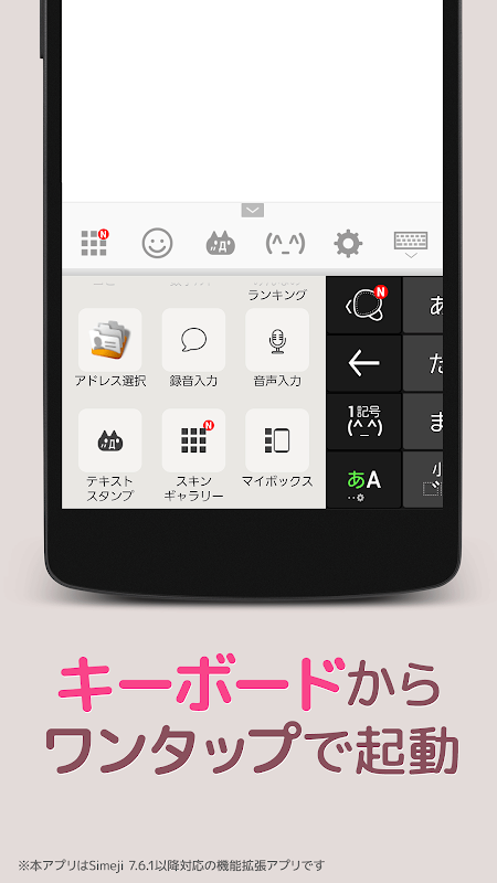 ・お使いの機種、Andorid OSのバージョン、Simejiのバージョンによっては、正常に動作しない場合があります。