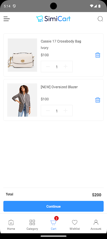 预览 Android 版 SimiCart 移动应用构建器