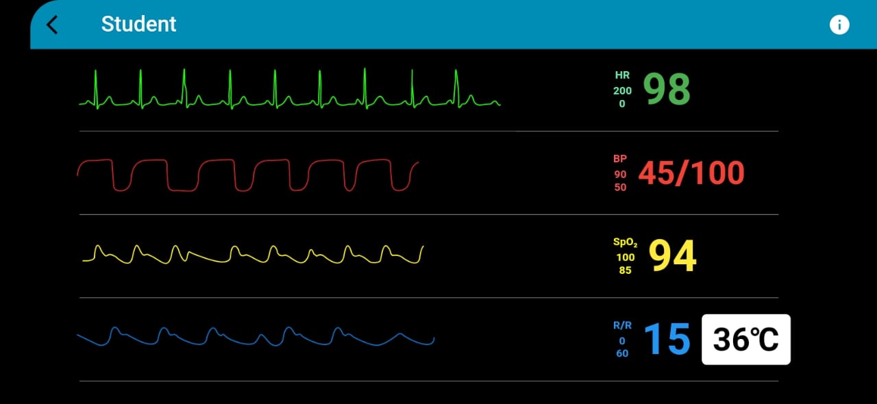 如果学生开始对模拟患者进行适当的治疗,指导者可能能够改善患者的生命体征。如果不这样做,患者可能会恶化并最终经历心脏骤停。