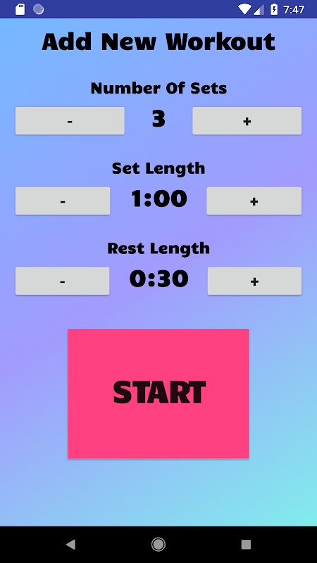 This simple interval timer implements a simple interface that will allow users to focus on their workout or task, rather than wasting time working out how to start the timer.