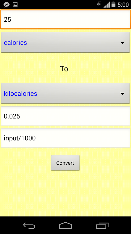 ** If you would like to copy the output of a conversion Long-Press the result box and a pop-up will allow you to copy it to the clipboard. Then you can Long-Press the input value box and select paste.