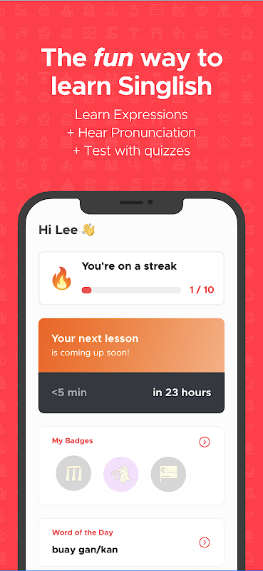 玩耍和练习 - 将您的学习变成游戏!挑战一下自己,看看你是否真的能用新加坡式英语“atas”。