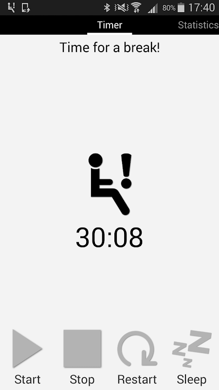 The app also knows when you are standing or walking. When you stand or walk for a while with the phone still in your pocket, the timer notifies you about the successful break. And the timer resets itself.