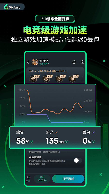 【高速线路】与知名云厂商合作搭建专属优质加速骨干网,高速,稳定,随心切换游戏/应用模式,自主选择线路;