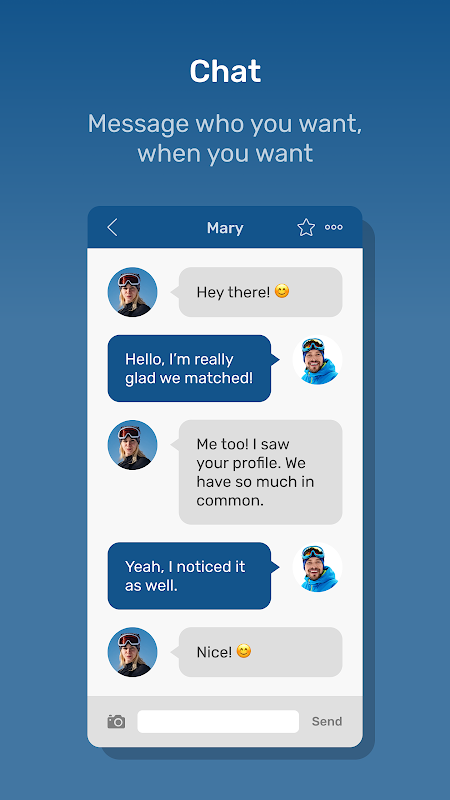 通过 Ski Dates,您可以结识来自世界各地的滑雪爱好者和单板滑雪爱好者。无论您是在寻找科罗拉多州的滑雪伙伴、阿尔卑斯山的单板滑雪爱好者,还是加拿大的单身人士,我们的应用都能让您聊天、联系,并一起规划您的下一次旅行。