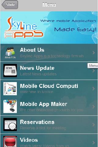 Skyline apps mobile phone applications for mobile web apps and mobile apps os utilizes Cloud Computing in partnership with Google. Powered by Google Apps, skyline apps provides mobility to its users. Skyline apps US Patent Pending Content Management System (CMS) allows the users to make mobile web apps for iPhone