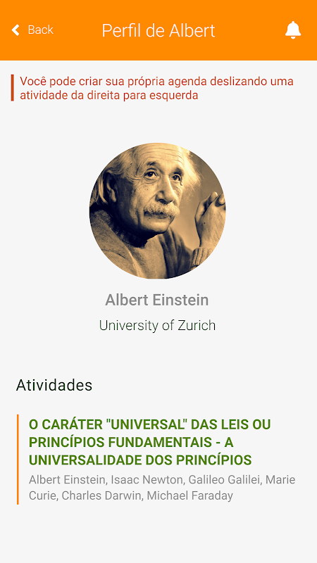 Você ainda pode favoritar e montar sua própria agenda, sendo que o app notifica com antecedência quais são as próximas atividades do encontro, notícias do evento e sobre possíveis alterações de horário, local e informações importantes.