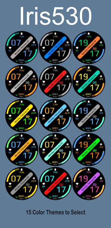 • 仅Wear OS:Iris530 表盘专为Wear OS 设备设计。